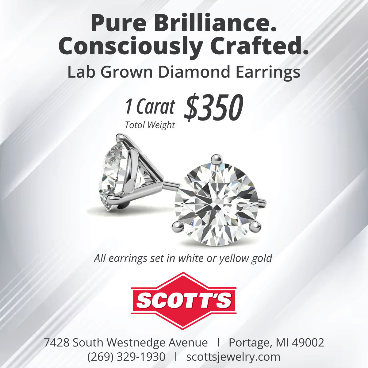 *All earrings set in 14 Carat White or Yellow Gold